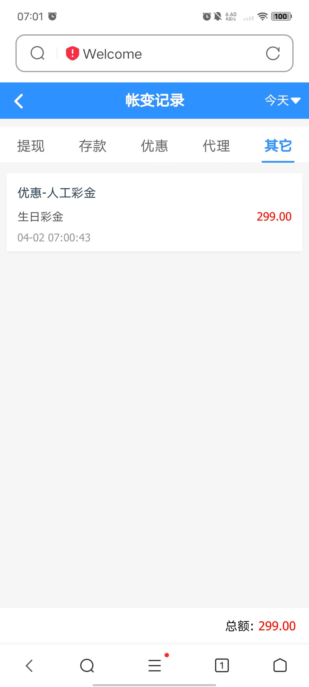兄弟们第一次签到7块打到167提了160退回來了,现在要充值100打3杯水,到時候水够了只能提188-1888随机,余額现在800几了,昨弄