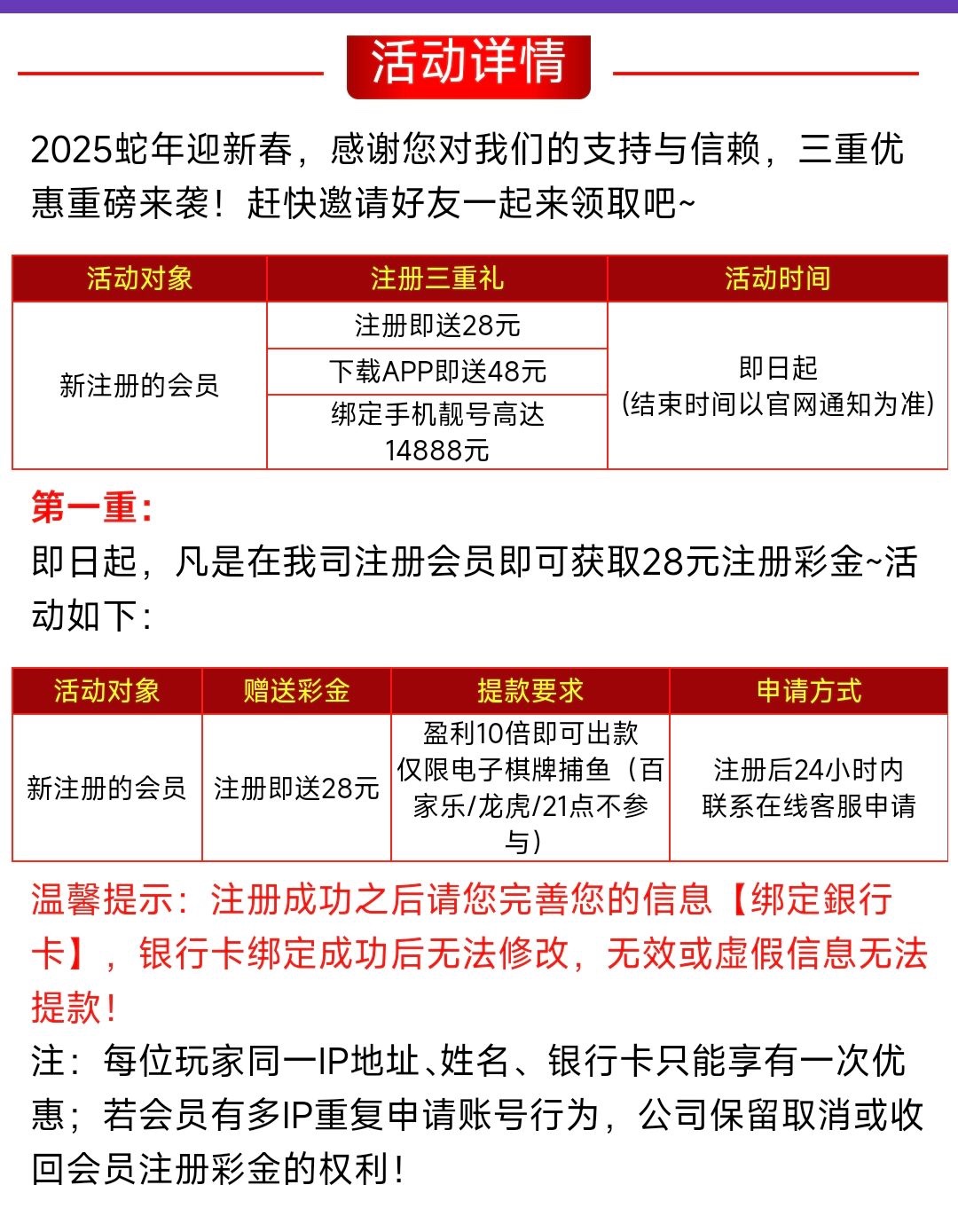 注册绑定银行卡找客服申请28,查IP严格(看脸送)