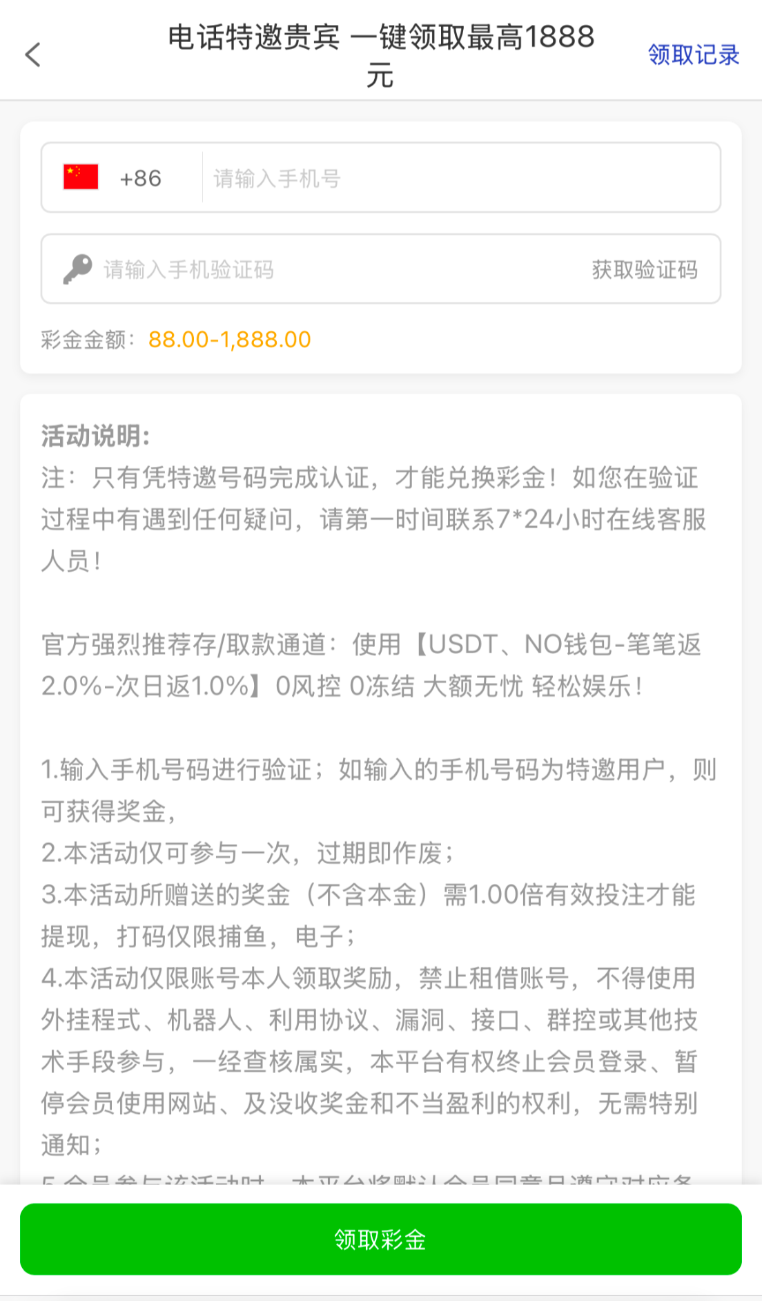 下载注册活动专区自行申请特邀彩金88,不送无视。新人首存50+54,打够流水就能提,相当于以小博大想打的去试试,详情看活动介绍,玩过的注意一下,第二天还有免费红包雨和摇钱树可以申请,PG除了麻将都还可以,电子里JDB水大,有兴趣试一试。
