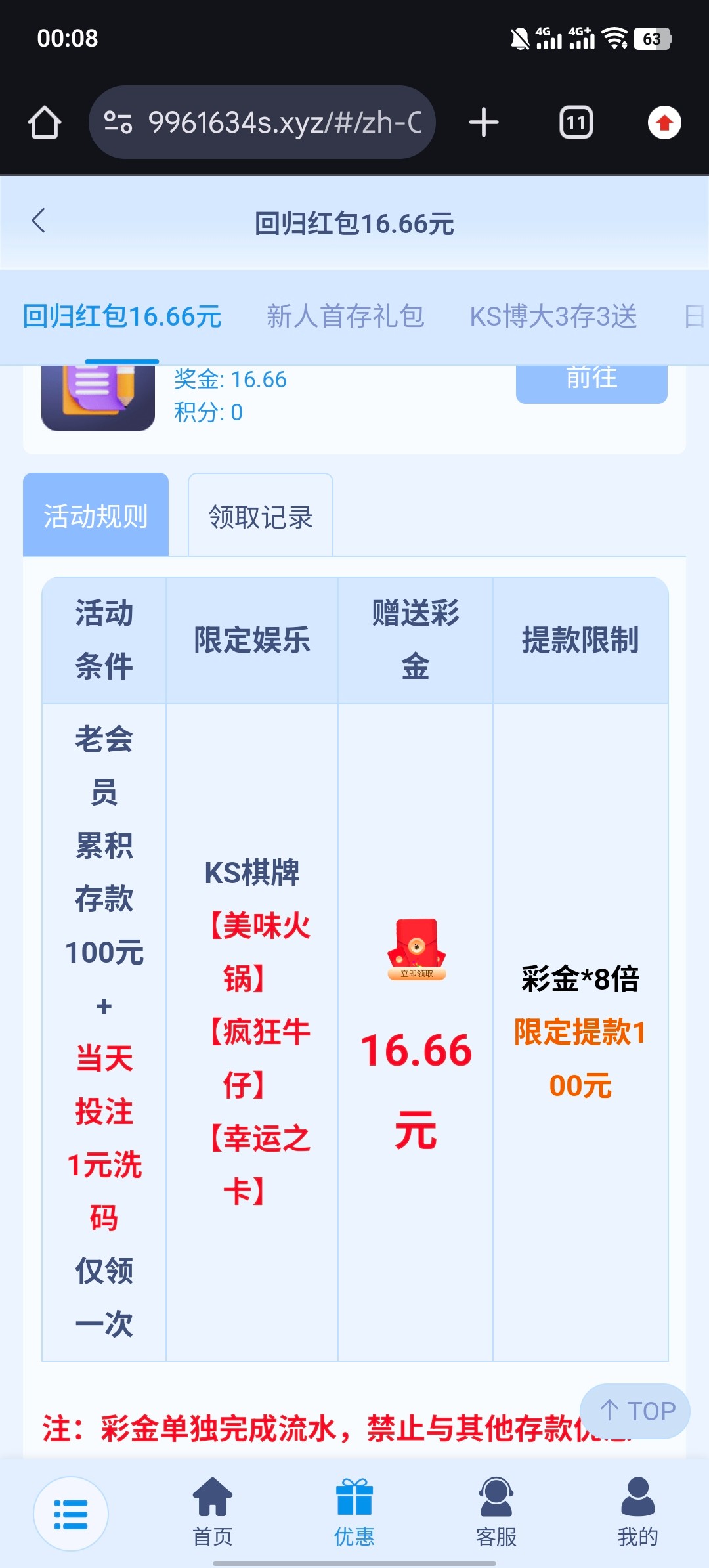 历史充值过100+的登录账号 手动领取 指定平台三款游戏 八倍流水提现