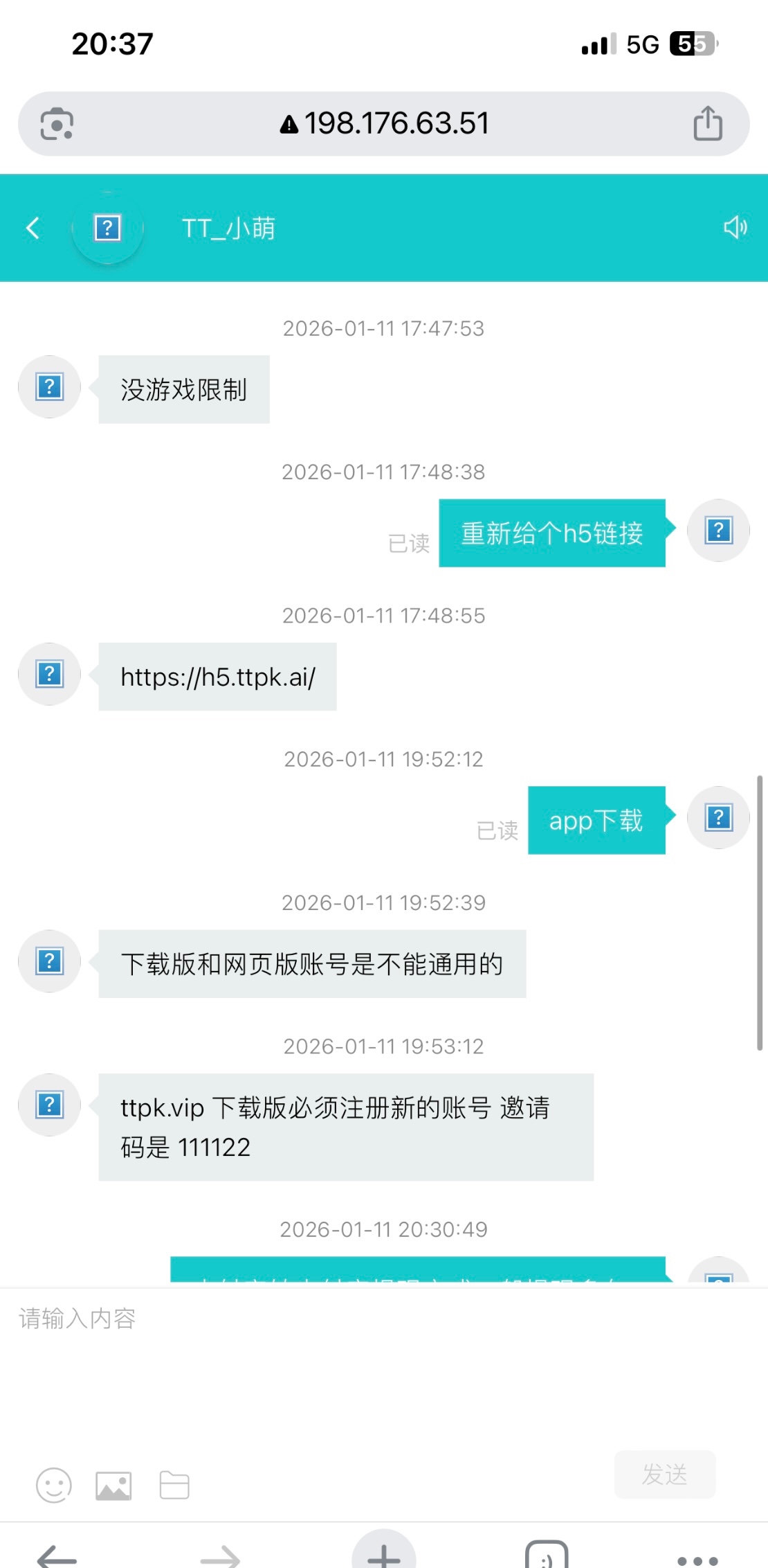 https://h5.ttpk.ai/,电话特邀来的,漏接电话试试。电子没水,我剩下4u的时候去德扑磨2小时才够流水。邀请码111122