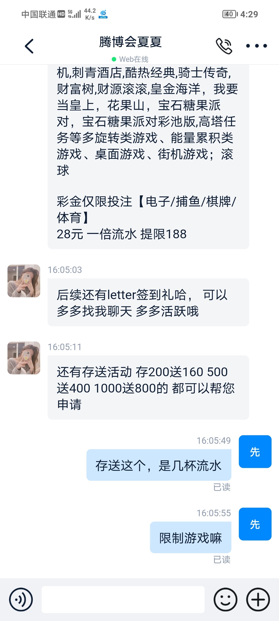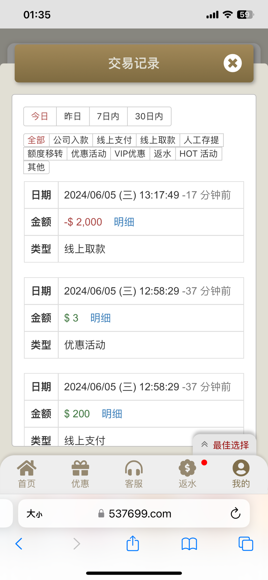 两天冲了1万5,本来要洗白了,最后1K直接闭眼单挑居然给了,白白忙活两天,现在还亏200多,还好给1万5的本保住了