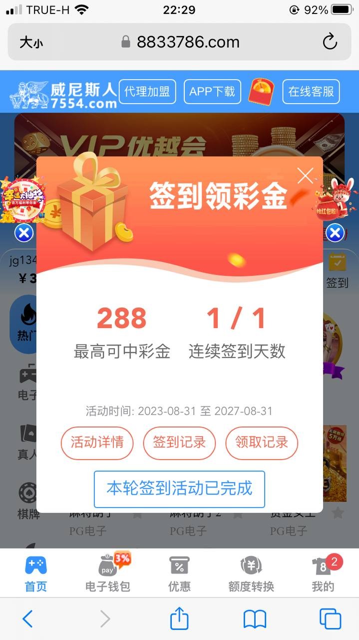 新用户注册 签到彩金在首页 最高288彩金 签到彩金 不可娱乐澳门六合彩和香港六合彩,三倍流水,签到彩金必须3日内娱乐,超3日后娱乐将会无效,余额将会扣除,具体自行查看,每天都可以签到薅一下能出就出,最低100提现  要是提现要充值可以试试直充可能出款
