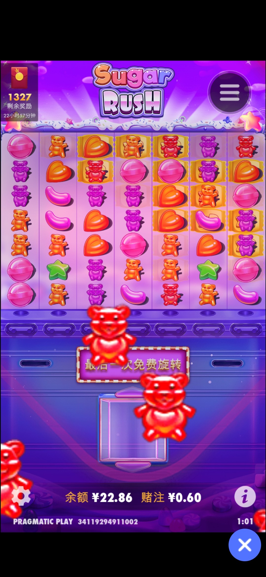 我从来没玩过pp,第一次玩pp60买了手极速糖果的免费,直接封顶5000倍了!
