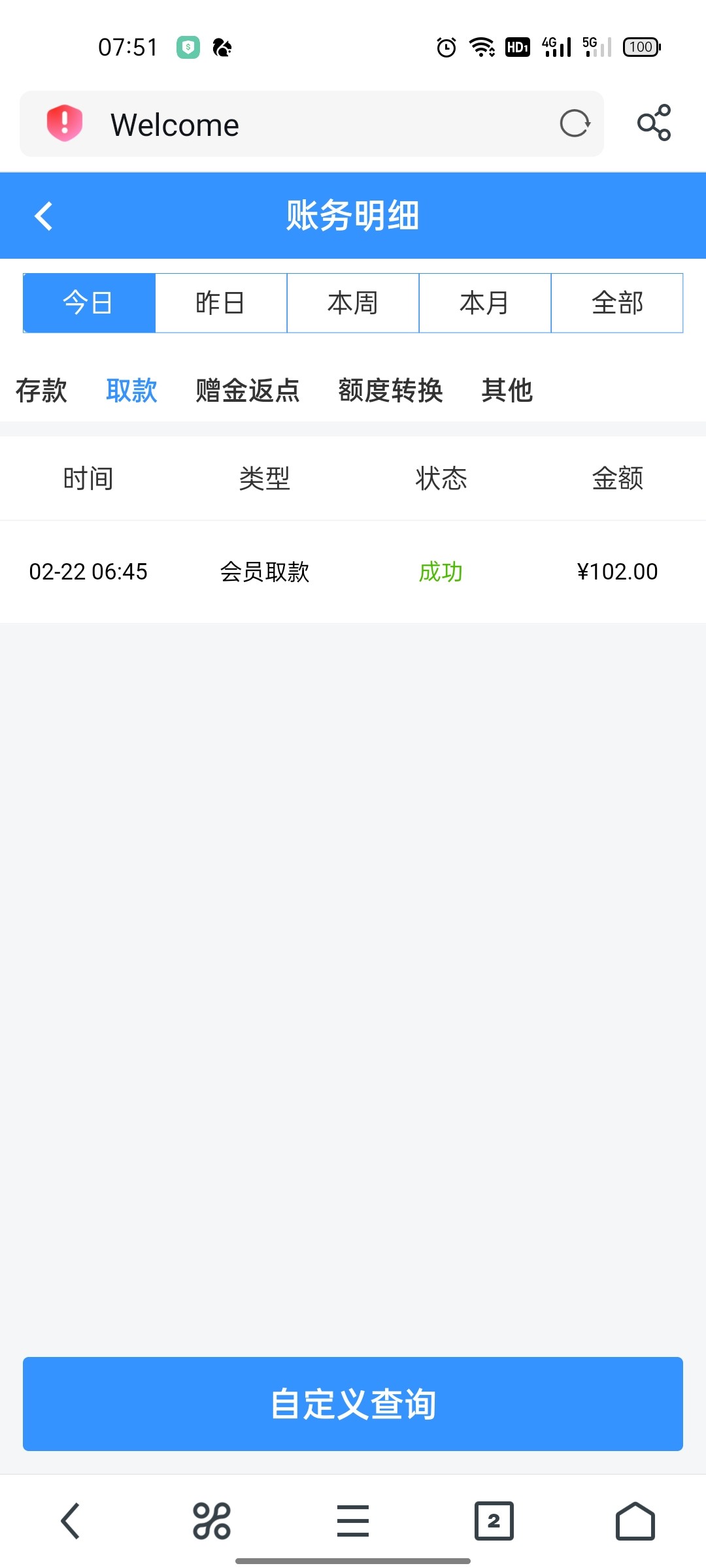 签到 出了102 出款挺慢的 银行卡出的