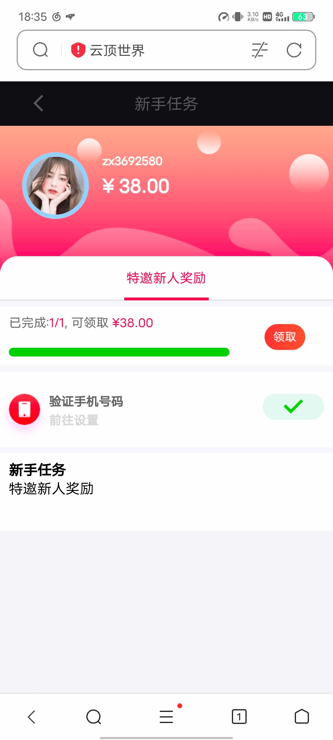 新老用户注册登入绑定手机号任务里领取秒18,应该是特邀碰瓷,可以看一下。