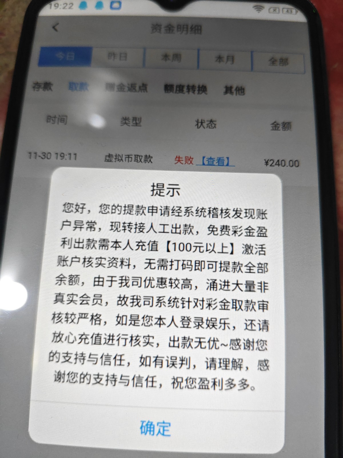 黑平台别充值注册了一个领了88到了288提现要充值100才能提 有注册了一个还没领彩金充了100打到380提现不给出要充值200才给出 然后充了200提又要充值死循环 不充值所有游戏都是维护中