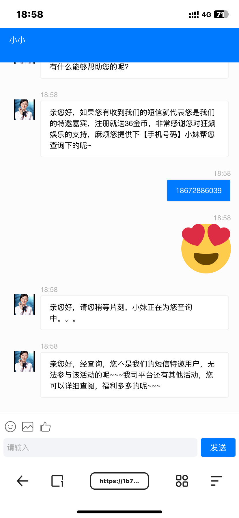 云南 真是见你妈逼鬼了。换了三个客服要来了一个手机号,就他妈没影了,杳无音讯,时辰打开你mlgb。