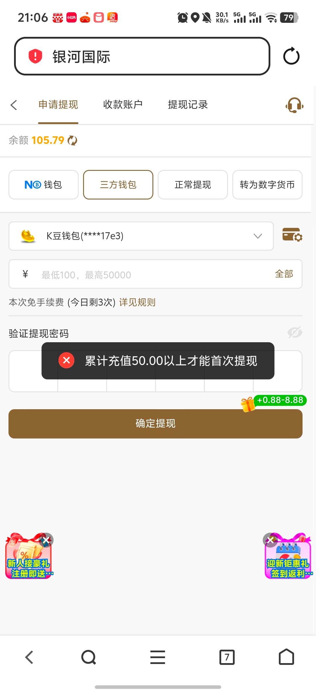 银河国际92991是不是黑台啊,提现要充值50