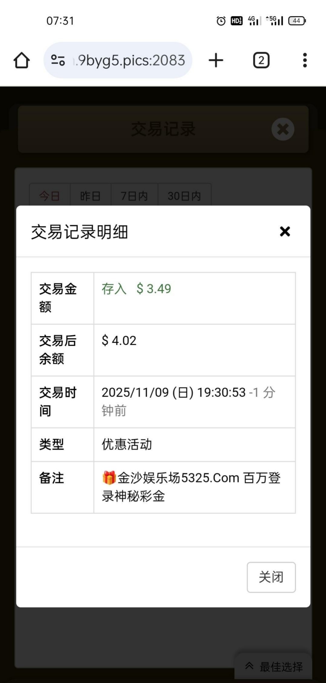 无聊上去登录了一下,弹出神秘彩金链接5325.com