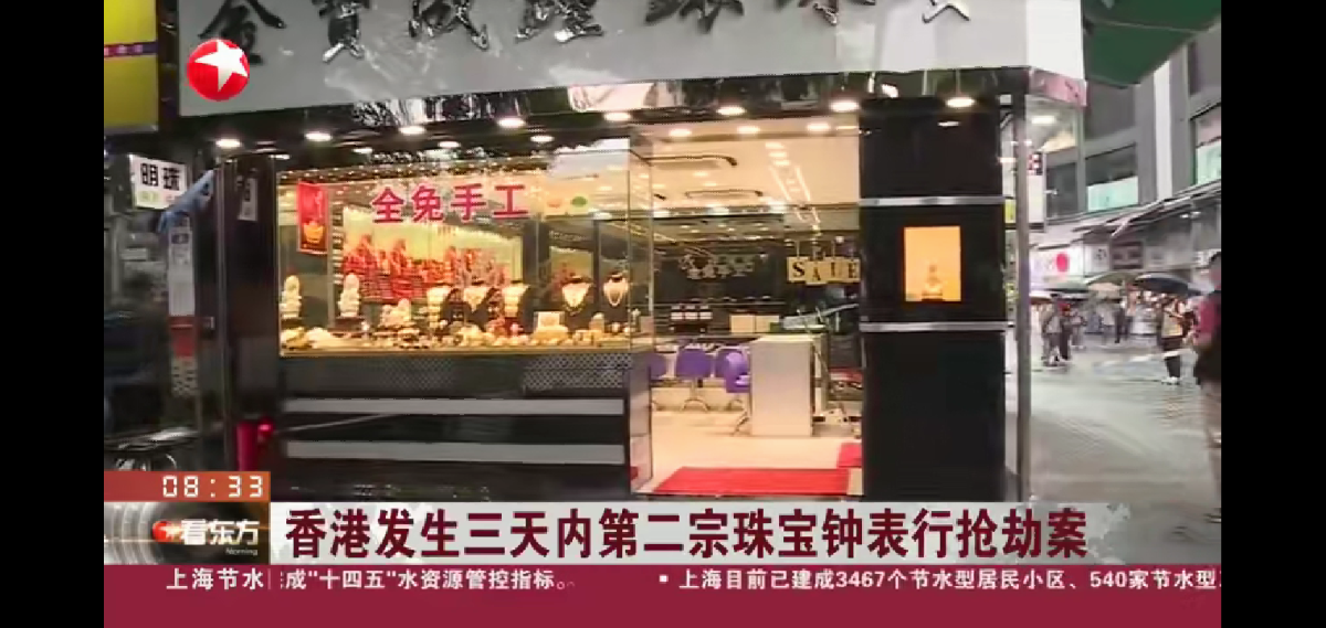 据网上流传片段显示,匪徒在店内搜掠,不断将手表放入一个大袋。消息指,匪徒劫去约120只手表,总值约1500万港元。