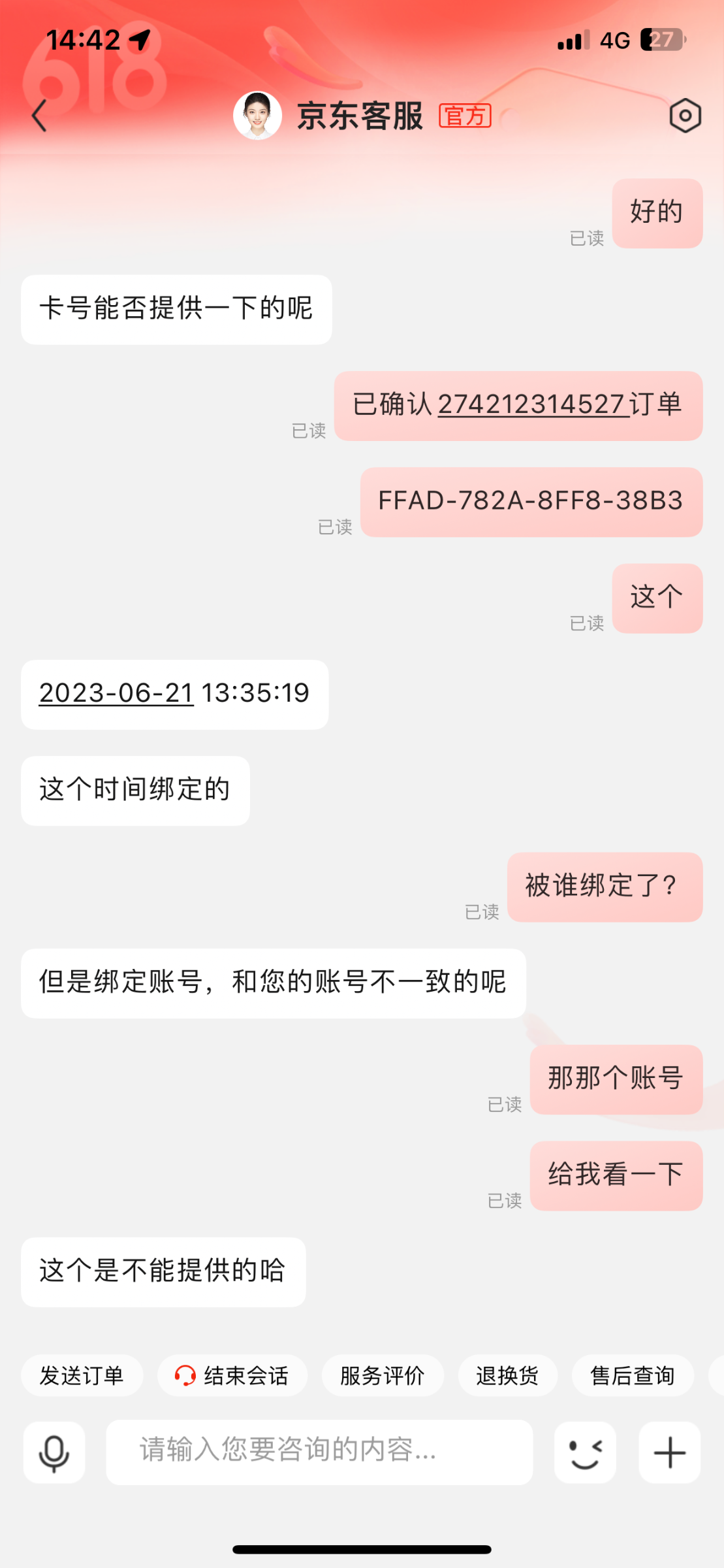 妈的,我充值不上分,我都点了提交,然后我等了两分钟不到账,我返回京东,看到已绑定,然后我去联系平台客服,客服就说你自己绑定了,我都没有绑定,然后我去礼品卡那里都没有,真的牛,然后就不回信息了,客服。